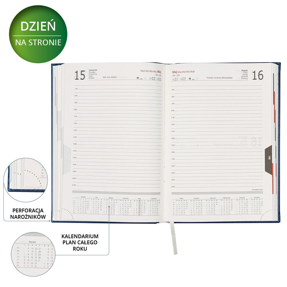 - układ: dzień na stronie (sobota i niedziela na jednej stronie)