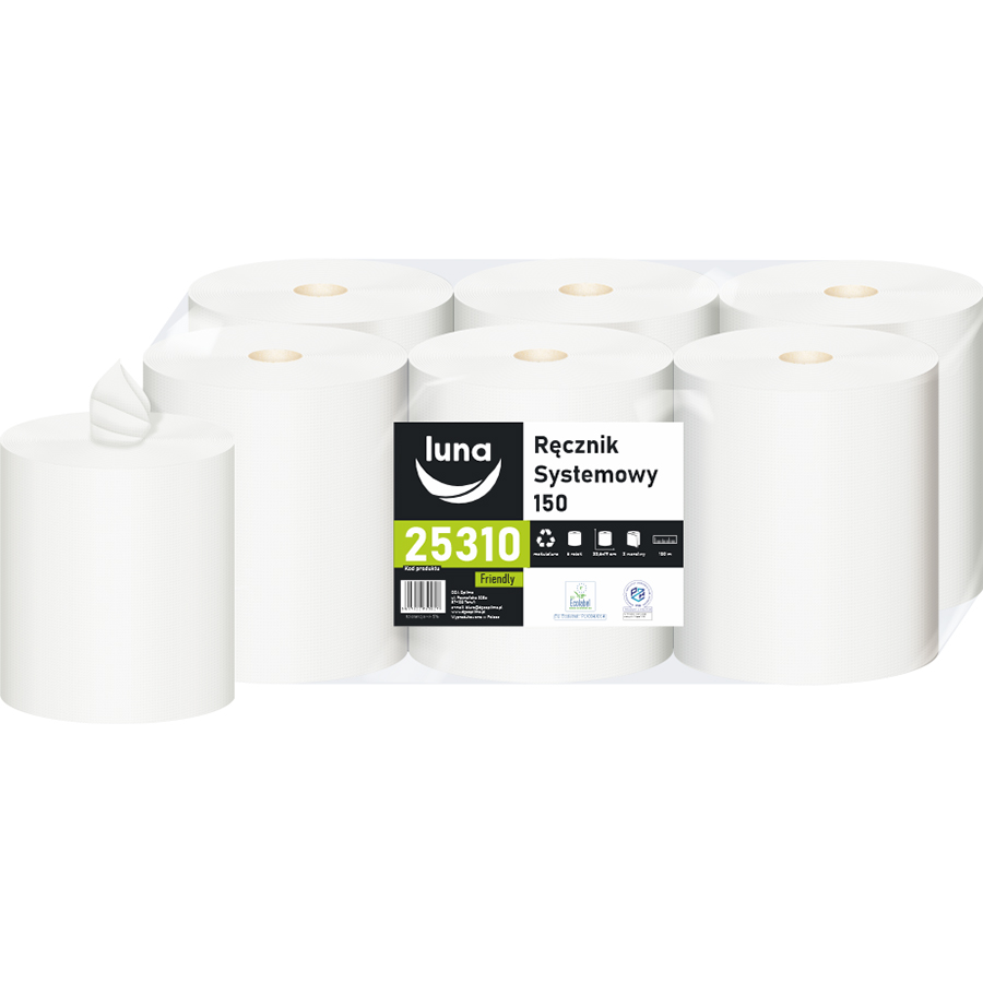 Ręczniki papierowe w roli centralnego dozowania Bulkysoft. Rolka ma długość 150 m i podzielona jest na 396 odcinków równej długości. Ręcznik można dozować z podziałem na listki, których odrywanie umożliwia specjalna perforacja. Dodatkowo może być stosowany w sposób nieograniczony - użytkownik sam decyduje o długości potrzebnego fragmentu. Ręczniki papierowe w roli są w kolorze białym, z delikatnym gofrowaniem. Posiadają dwie warstwy wysokiej jakości papieru z czystej, selekcjonowanej celulozy. Są wyjątkowo chłonne i wytrzymałe, a jednoczenie nie rolują się podczas używania i nie rozrywają. Miłe w dotyku, miękkie i bezpieczne zarówno dla skóry, jak i żywności, z którą mogą mieć styczność. Są wydajne i praktyczne - idealne do pomieszczeń z średnim i dużym natężeniem użytkowania. Certyfikat ISEGA dopuszcza ręczniki papierowe w roli Bulkysoft do kontaktu z żywnością.
