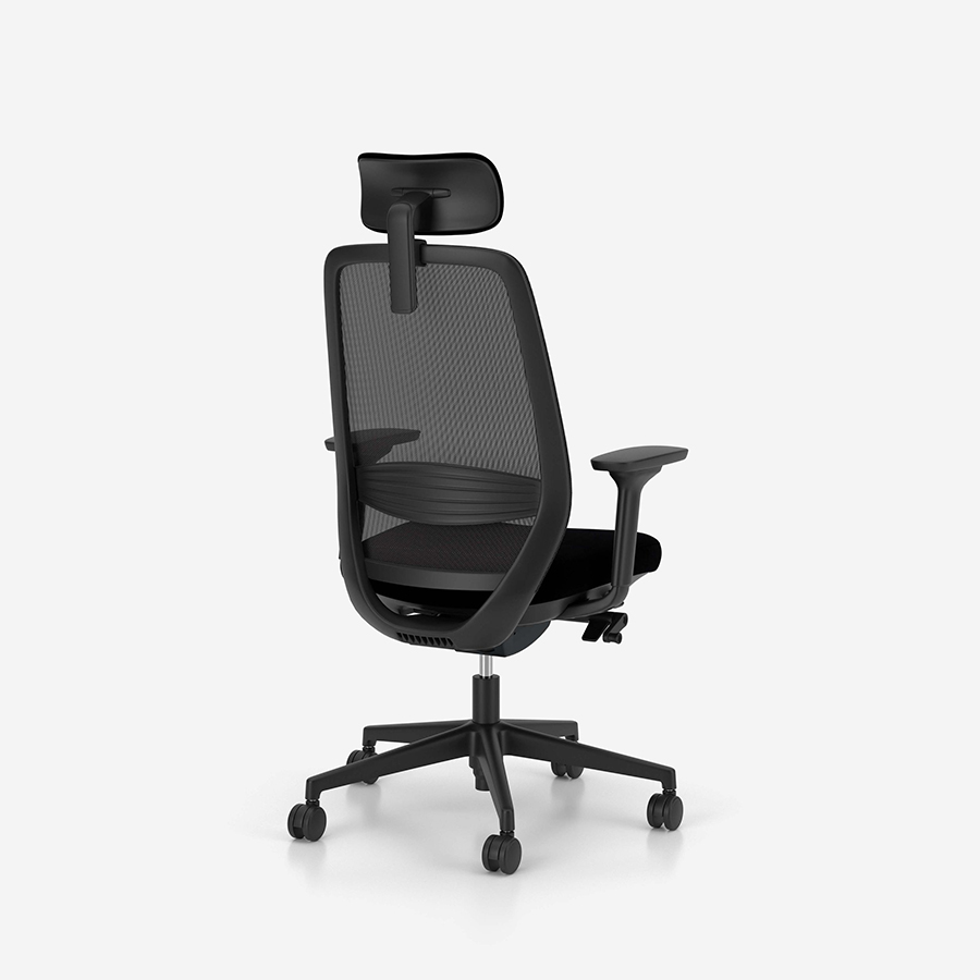 - siatkowe oparcie dba o wentylację pleców, a tapicerowane siedzisko z plastikową osłoną gwarantuje komfort nawet przez wiele godzin