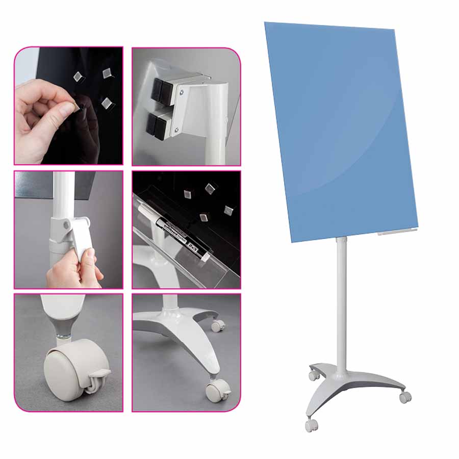 Dzięki specjalnej półce na akcesoria, umieszczonej na całej szerokości flipcharta, wszystkie niezbędne markery, gąbki i magnesy są zawsze pod ręką. To praktyczne rozwiązanie sprawia, że praca z flipchartem staje się jeszcze bardziej efektywna i uporządkowana.