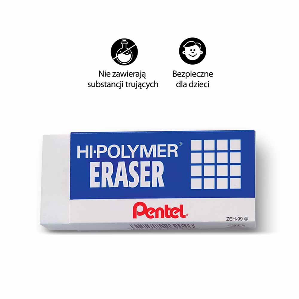 Pentel Hi-Polymer Eraser nie zawiera szkodliwych substancji, takich jak lateks i ftalany, dzięki czemu jest całkowicie bezpieczna dla dzieci. Możesz spokojnie dać ją swojemu dziecku do szkoły, mając pewność, że korzysta z produktu najwyższej jakości.