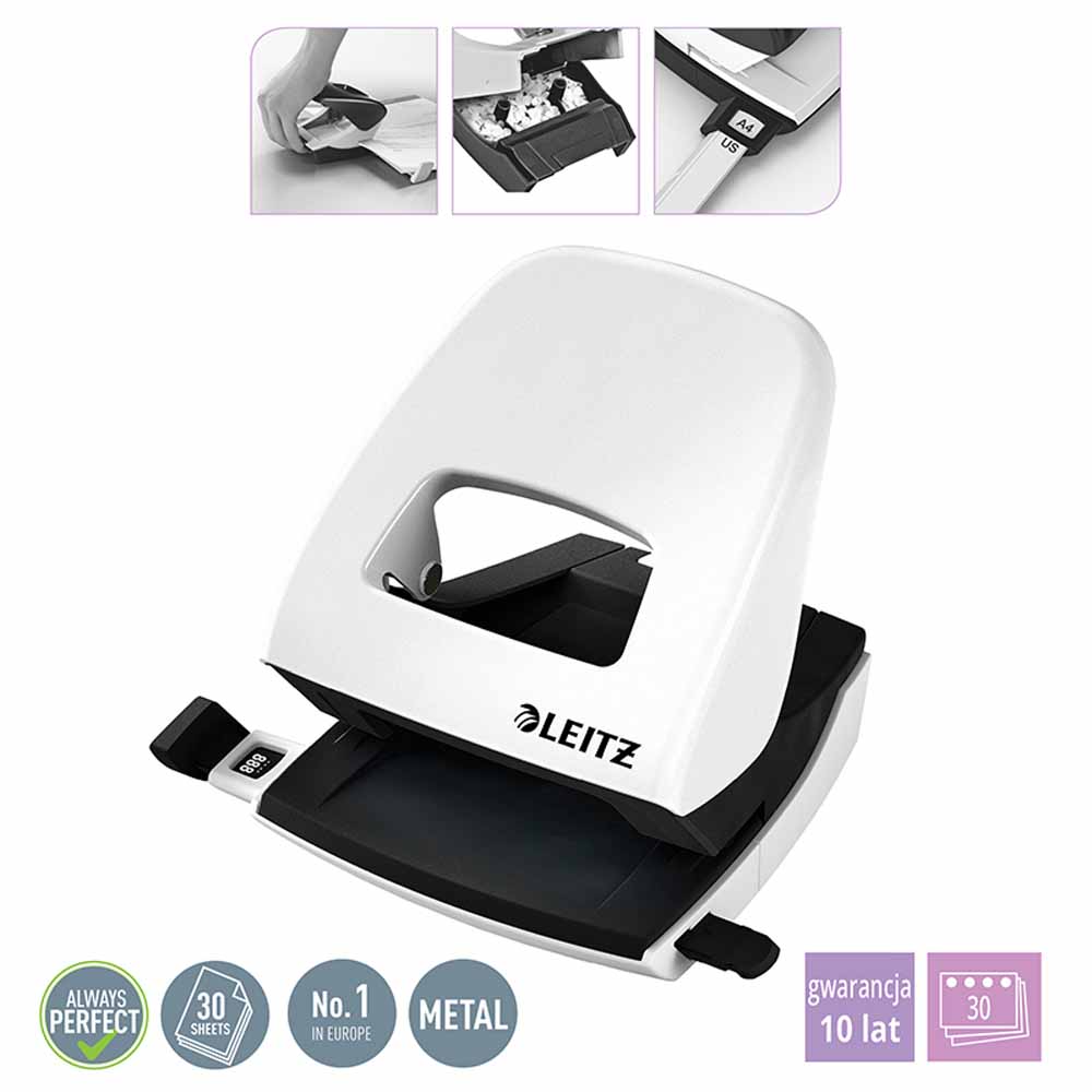 Dziurkacz Eagle 837 to narzędzie, które łączy w sobie solidną konstrukcję z precyzyjnymi funkcjami, idealne do intensywnego użytkowania w biurze. Metalowe ramię zapewnia trwałość i niezawodność, a pojemnik na odpady z tworzywa sztucznego nierysującego podłoża dba o porządek na Twoim biurku.