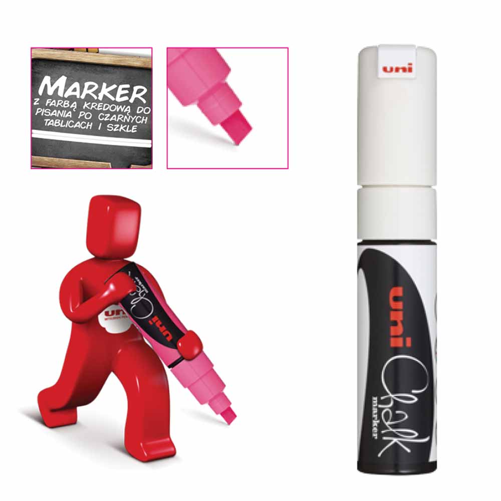 Marker UNI PWE5M oferuje grubość linii pisania od 1,8 do 2,5 mm, co zapewnia wyraźne i czytelne oznaczenia. Idealny do tworzenia eleganckich napisów i rysunków na tablicach kredowych i szkle.