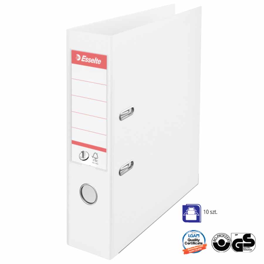 Wnętrze segregatora zdobi biała wyklejka papierowa, która jest zarówno estetyczna, jak i funkcjonalna. Wysokiej jakości dźwignia z dociskiem zapewnia pewne trzymanie dokumentów i łatwość użytkowania.