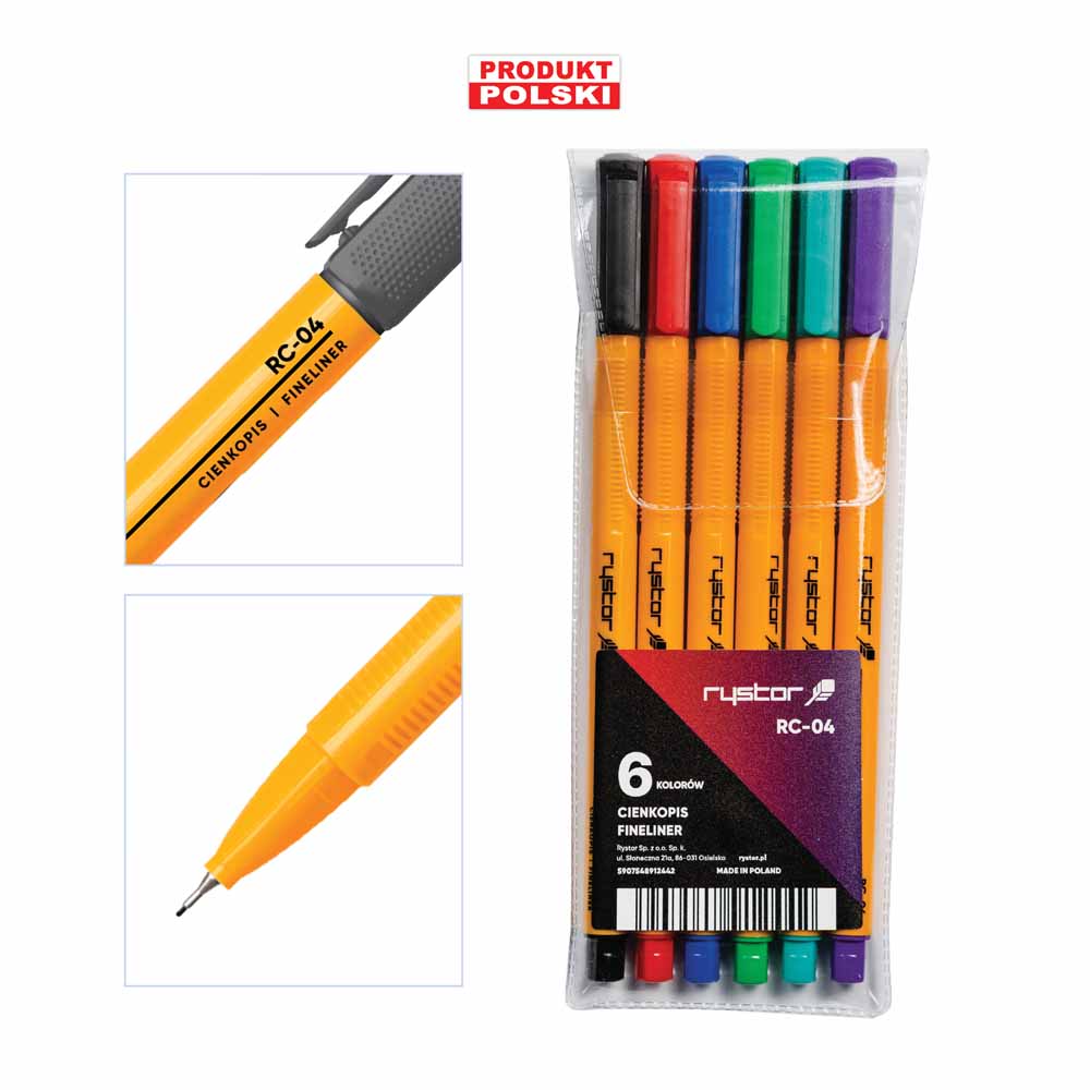 Elementy obudowy cienkopisu są w kolorze tuszu, co ułatwia jego identyfikację. Tusz na bazie wody jest bezpieczny i ekologiczny, zapewniając jednocześnie intensywne i trwałe kolory.