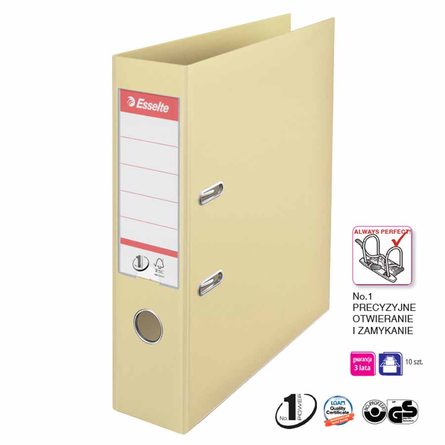 Segregator wyposażony jest w dolną listwę wzmacniającą, która dodatkowo zwiększa jego wytrzymałość. Jest pokryty matową folią polipropylenową o strukturze płótna, co nadaje mu elegancki wygląd i chroni przed uszkodzeniami.
