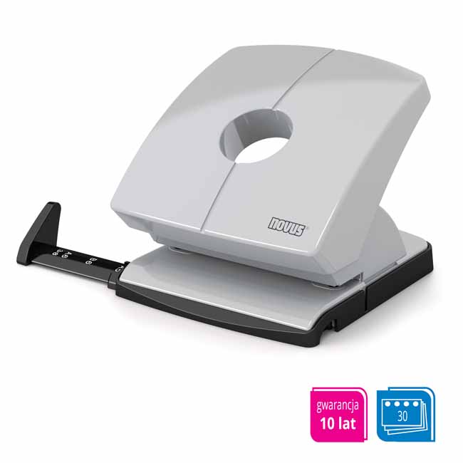 Wyraźne oznaczenia formatu i wytrzymała prowadnica gwarantują perfekcyjne wyrównanie papieru, co jest kluczowe dla uzyskania idealnych otworów. Wygodny, ergonomiczny uchwyt oraz najwyższej jakości ostrza sprawiają, że dziurkowanie jest szybkie i wymaga minimalnego wysiłku.