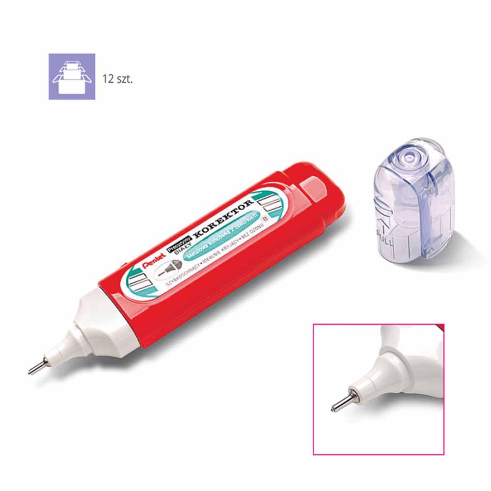 Korektor w piórze Pentel ZL63, o pojemności 7 ml, wyposażony jest w innowacyjną końcówkę zaworkową, która przepuszcza dokładnie wymierzoną ilość płynu. W przeciwieństwie do modeli z popularną końcówką kulkową, końcówka zaworkowa nie zaciera się, zapewniając niezawodną i precyzyjną korektę każdego błędu.