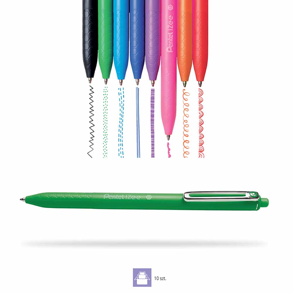 Długopis automatyczny Pentel BK437 został zaprojektowany z myślą o maksymalnym komforcie użytkowania. Wygodny gumowy uchwyt w kolorze tuszu zapewnia pewny chwyt i zapobiega wyślizgiwaniu się długopisu z dłoni, co umożliwia długotrwałe pisanie bez zmęczenia.