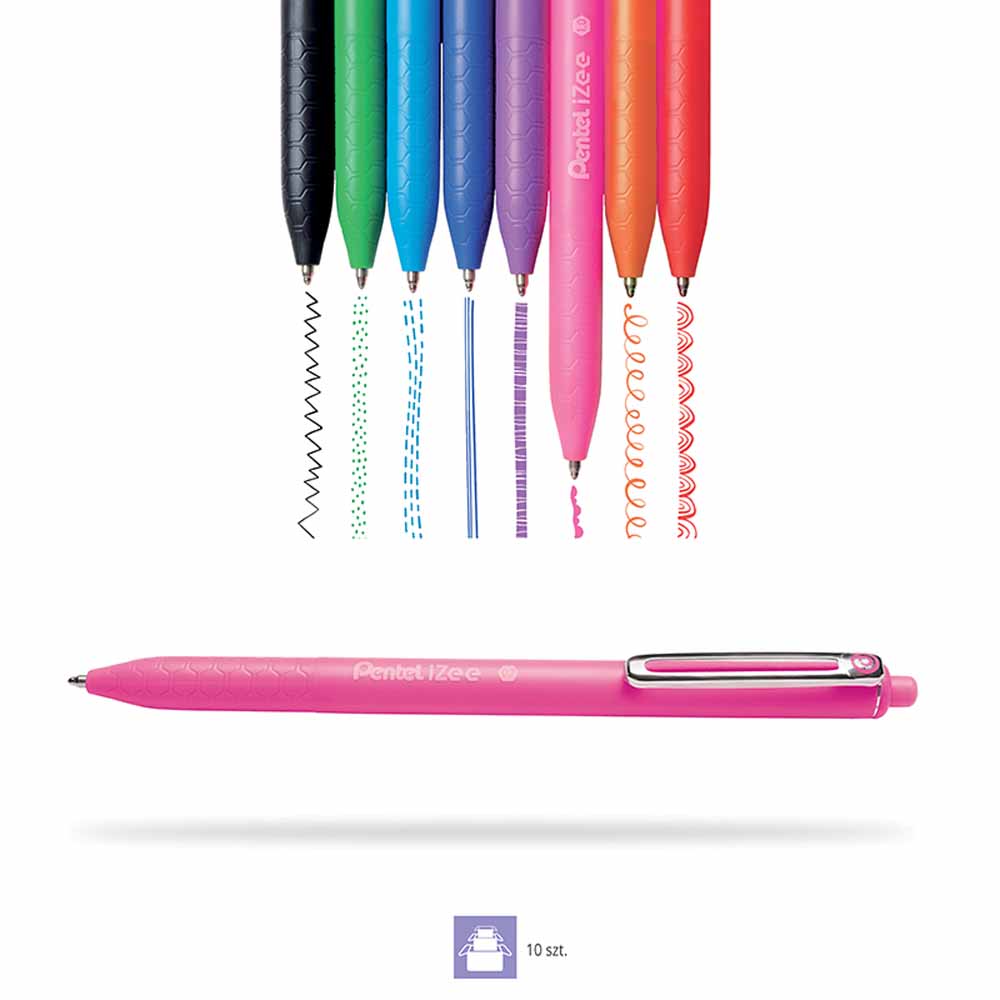 Długopis automatyczny Pentel BK437 został zaprojektowany z myślą o maksymalnym komforcie użytkowania. Wygodny gumowy uchwyt w kolorze tuszu zapewnia pewny chwyt i zapobiega wyślizgiwaniu się długopisu z dłoni, co umożliwia długotrwałe pisanie bez zmęczenia.