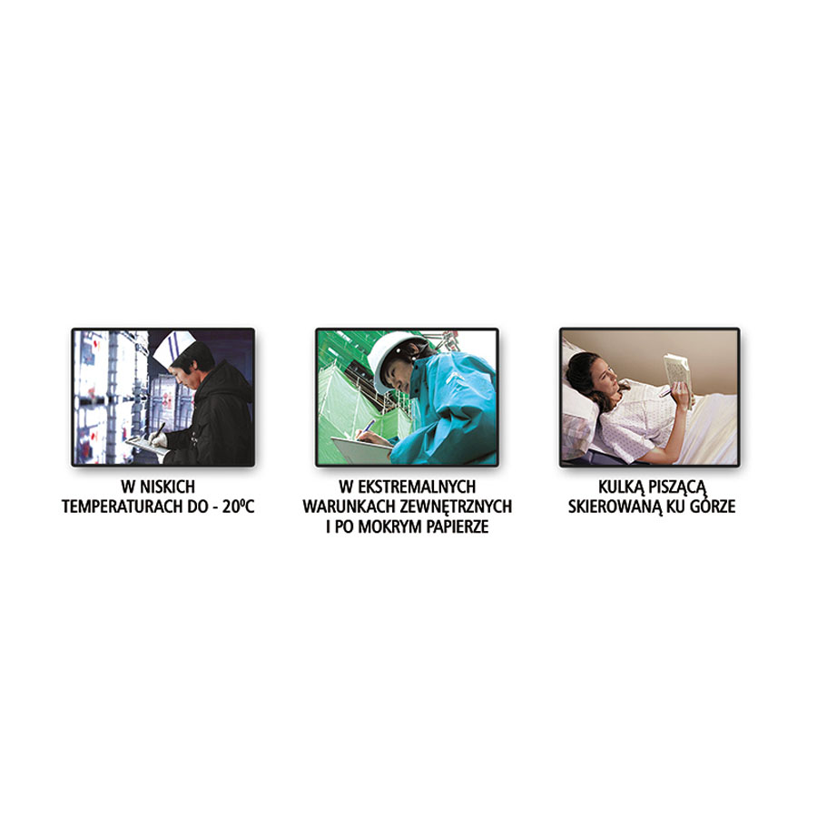 - możliwość pisania po wilgotnym papierze i w temperaturze do -20 stopni