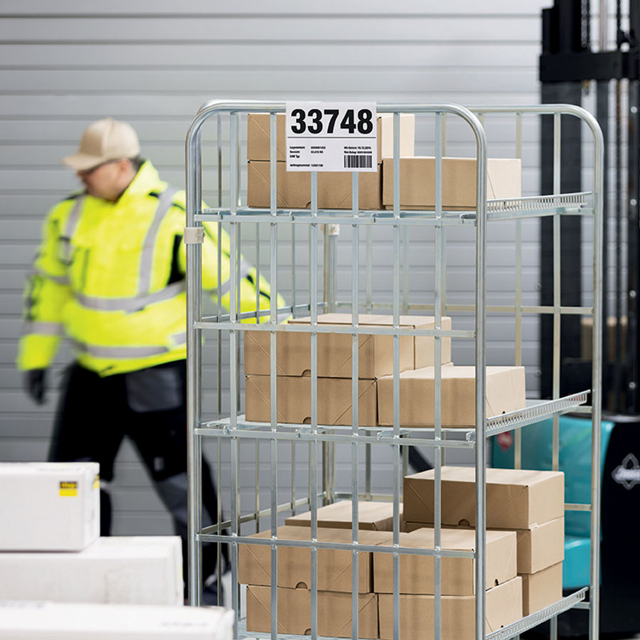- kieszeń magazynowa wykonana z przezroczystej twardej folii PET z zakładką do zawieszenia na kartonach, pudełkach lub innych pojemnikach