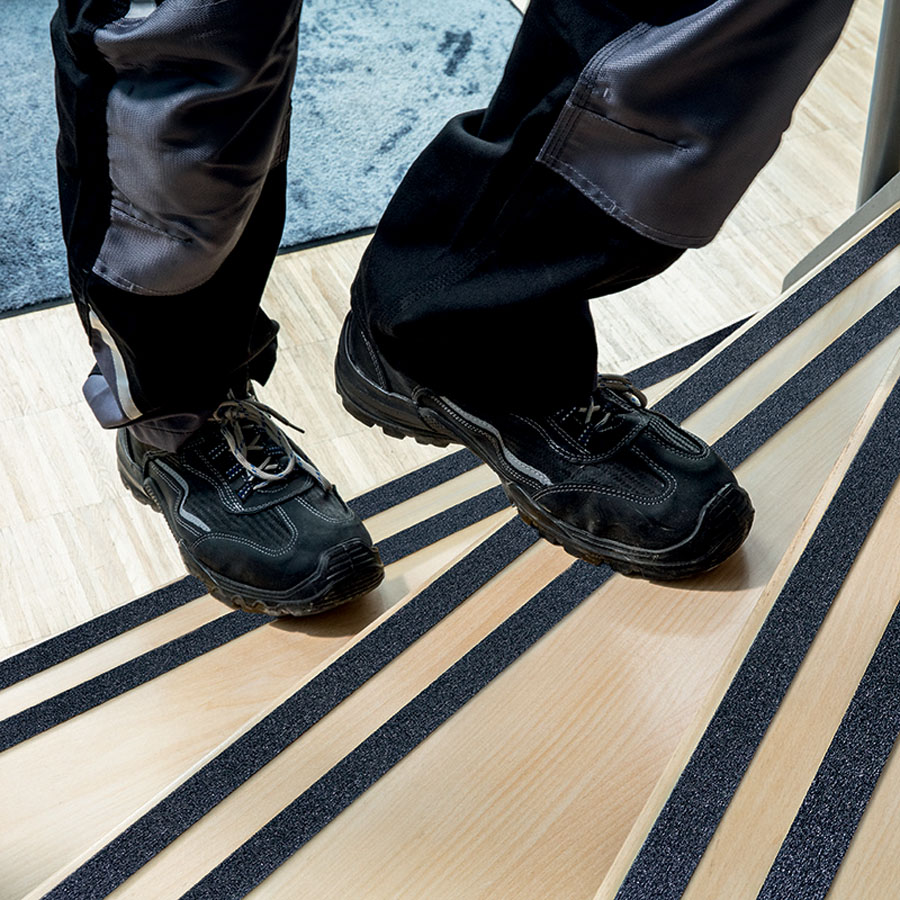 - standardowa antypoślizgowa taśma samoprzylepna do zwiększenia bezpieczeństwa traktów komunikacyjnych i powierzchni ruchu pieszego