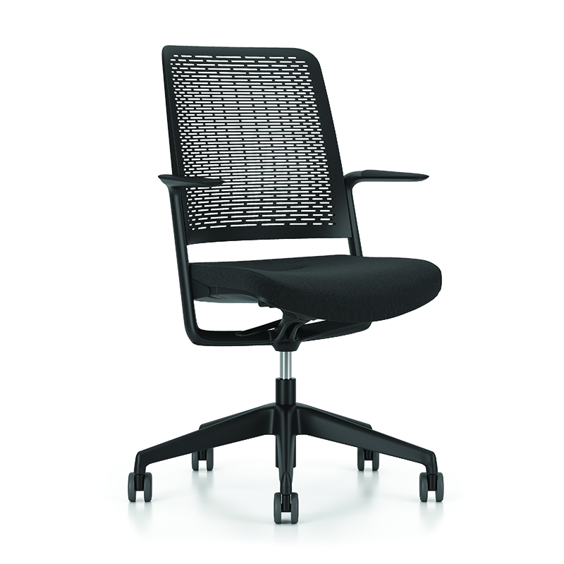 ergonomiczny, obrotowy fotel biurowy z wysokiej jakości siatką na siedzisku, oparciu i zagłówku siedzisko bez wypełnienia pianką zapewnia przepływ powietrza i podnosi komfort podczas wielogodzinnej pracy mechanizm synchroniczny umożliwia regulację wysokości siedziska i kąta nachylenia oparcia blokada w 5 pozycjach zagłówek z regulacją wysokości i kąta nachylenia podłokietniki z regulacją wysokości i możliwością podnoszenia zapewniająca stabilność pięcioramienna, nylonowa podstawa podnośnik gazowy (siłownik) klasy 4: 80 mm kółka nylonowe, twarde, do miękkich powierzchni - średnica 50 mm materiał: 100% poliester, mesh wysokość krzesła: 115 - 122,5 cm regulacja wysokości siedziska w zakresie: 45 - 53 cm szerokość oparcia (w najszerszym punkcie): 50 cm wysokość robocza oparcia: 53 cm szerokość siedziska (w najszerszym punkcie): 50 cm głębokość siedziska: 47 cm średnica podstawy: 66 cm maksymalne obciążenie: 136 kg kolor: czarny