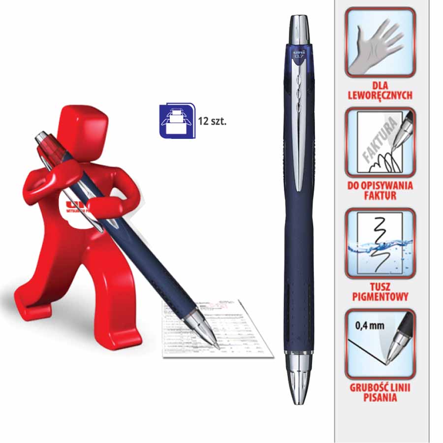 Dzięki specjalnej formule tuszu, pióro UNI SX-217 umożliwia płynne i nieprzerywane pisanie nawet po śliskich powierzchniach, takich jak faktury czy papier kredowy.